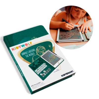 Tableta o pizarra portátil Kidydraw Mini para escribir y dibujar con fichas de animales salvajes, de Kidywolf.
